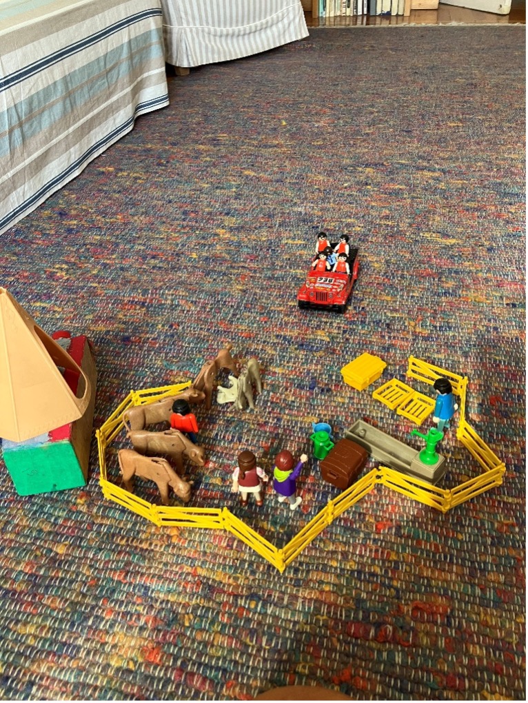 Soltanto una volta pronti i due – sufficientemente separati – ambiti, (che andavano preparati rigorosamente ognuna per sé), eravamo pronte per il gioco condiviso: scorribande delle due combriccole di bambini, che si univano in attività avventurose e pericolose nel territorio selvaggio che circondava le loro case.